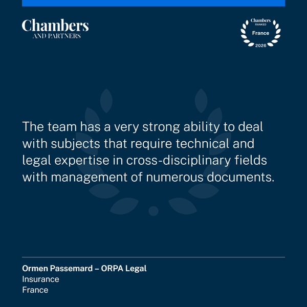 ORPA Legal is among the Top 5 Insurance Law firms in France, according to Chambers France Guide 2026